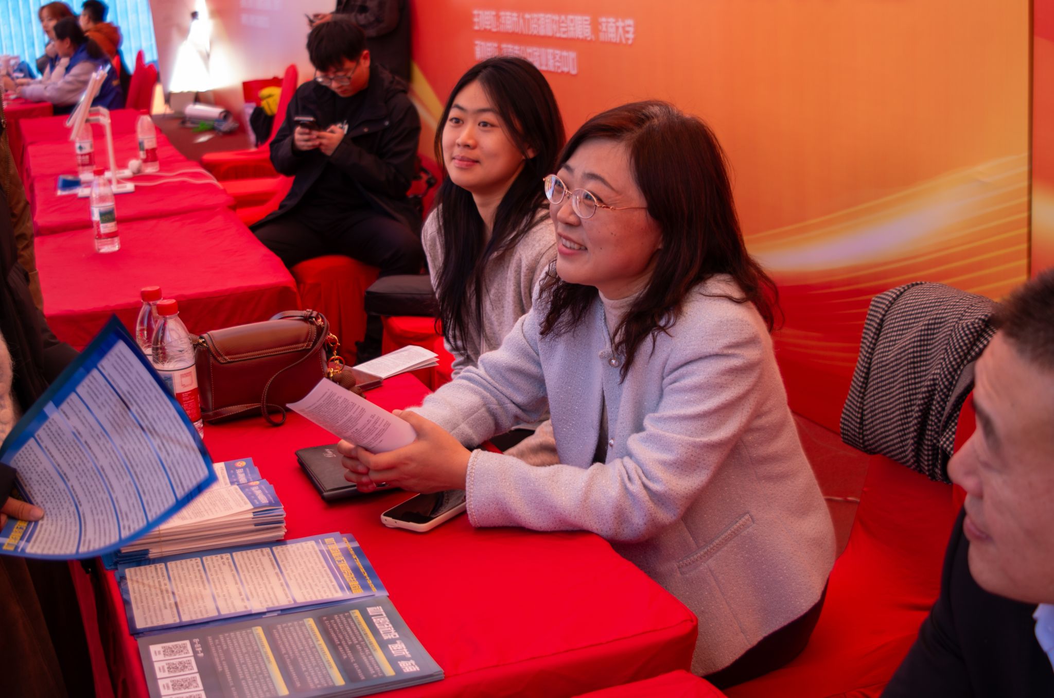 此外,现场还有七十余名志愿者在双选会各展区间穿梭服务,向求职学子发放了《中华人民共和国劳动合同法》《职场社保“避坑”指南》《初入职场必须了解的劳动法律问题》等宣传资料。志愿者们巧妙地将劳动法、社会保险基金管理等课堂知识融入咨询讲解,并对现场数百名企业进行了详细的问卷调查,既在服务中深化了理论认知,又在实践中提升了专业能力。
