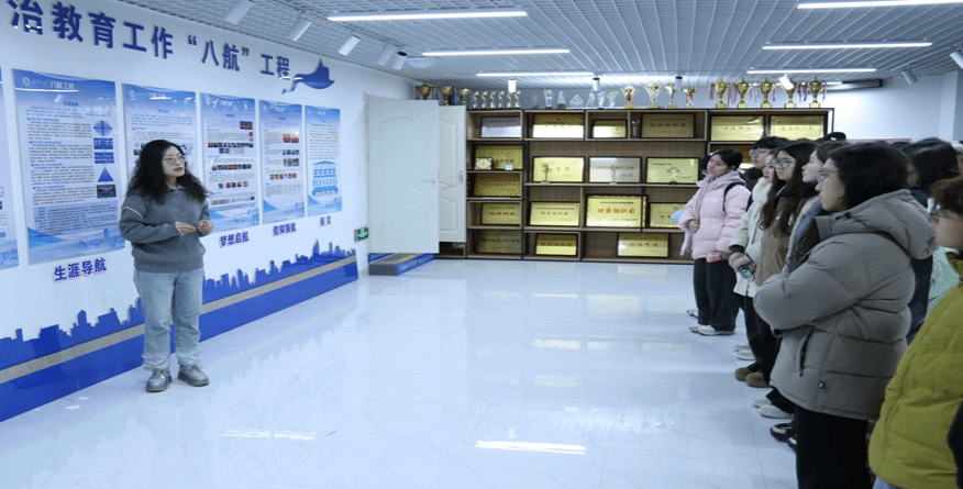 同学们在思政展厅观摩,了解到学校推进信仰领航、梦想启航、学业引航、生涯导航、家访助航、资助护航、心理稳航、就业远航“八航”工程,结合自身入校后的学习生活体验,同学们真切感受到学校和老师们在思想引导、学业帮扶、生活关怀等方面的默默付出,纷纷表示表示这是一场思想的洗礼,也是一场与老师和学校的近距离对话。