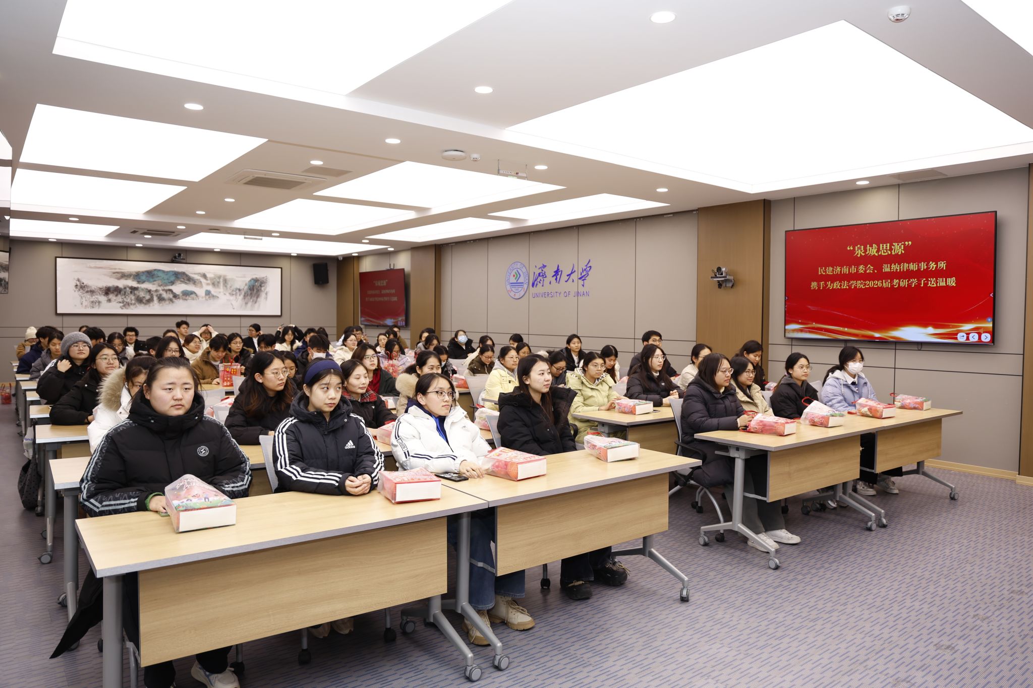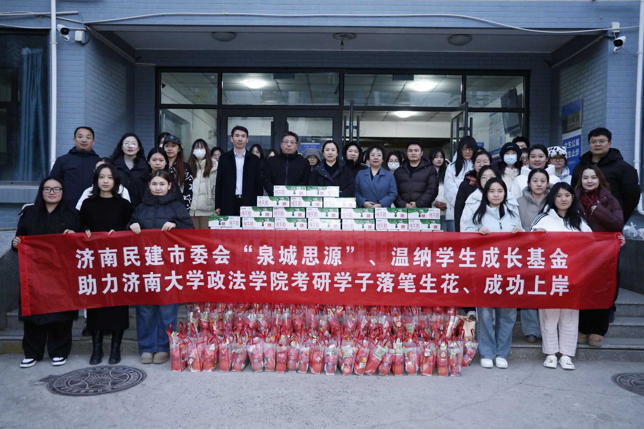 冬日凝寒,研梦炽热。为坚定备考信心,传递温暖力量,政法学院于12月2日开展为考研学生送温暖活动。学院党委书记李春慧,党委副书记、副院长李涛,全体辅导员,民建济南市委会常委韩炜,民建市中区总支委员、山东温纳律师事务所主任、我校法学专业2005届毕业生武磊,民建市中总支六支部副主委刘爽在第五学术报告厅开展考研动员会,与会领导到图书馆、学生第21号宿舍楼、第33号宿舍楼慰问考研学子。民建济南市委会“泉城思源”公益品牌携手山东温纳律师事务所为学生准备考研“加油包”。