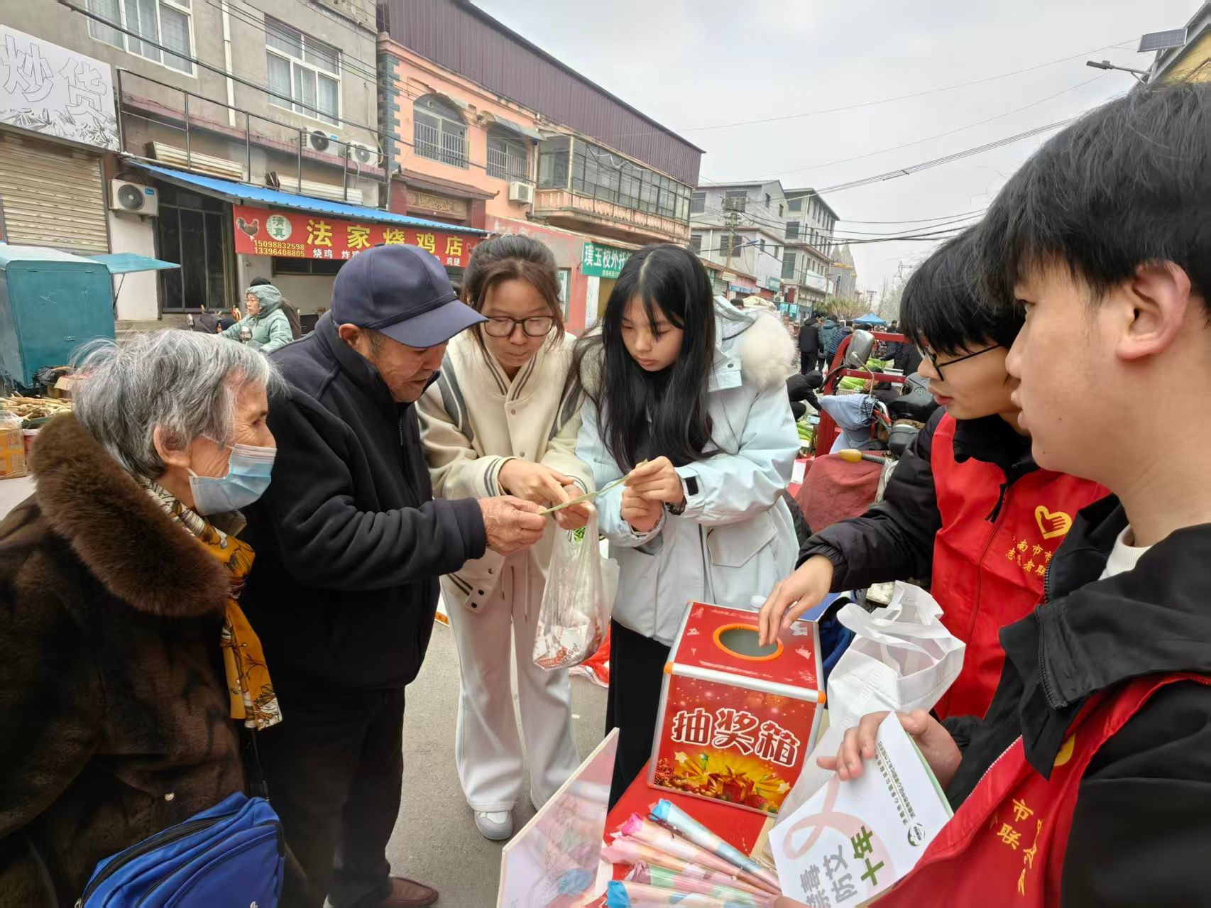 现场活动气氛热烈。济南大学实习生们在认真完成前期的准备活动后,主动热情邀请赶集居民参与竞答,耐心讲解答题规则与参与方式,用通俗易懂的语言向老人、商户、家长等群体普及国际社工日及社会工作服务内容;对答题有误的居民细致讲解知识,对答对获奖的居民予以鼓励,宣传带动更多人参与。同时,济南大学实习生们还主动协助维持现场秩序,保障了本次国际社工日宣传活动安全有序、顺利高效开展。