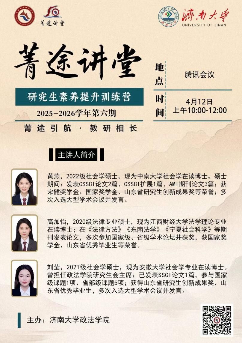 政法·活动丨聚力赋能,博学致远——我院“菁途讲堂”第六期学术深造规划与考博申博经验分享会成功举办