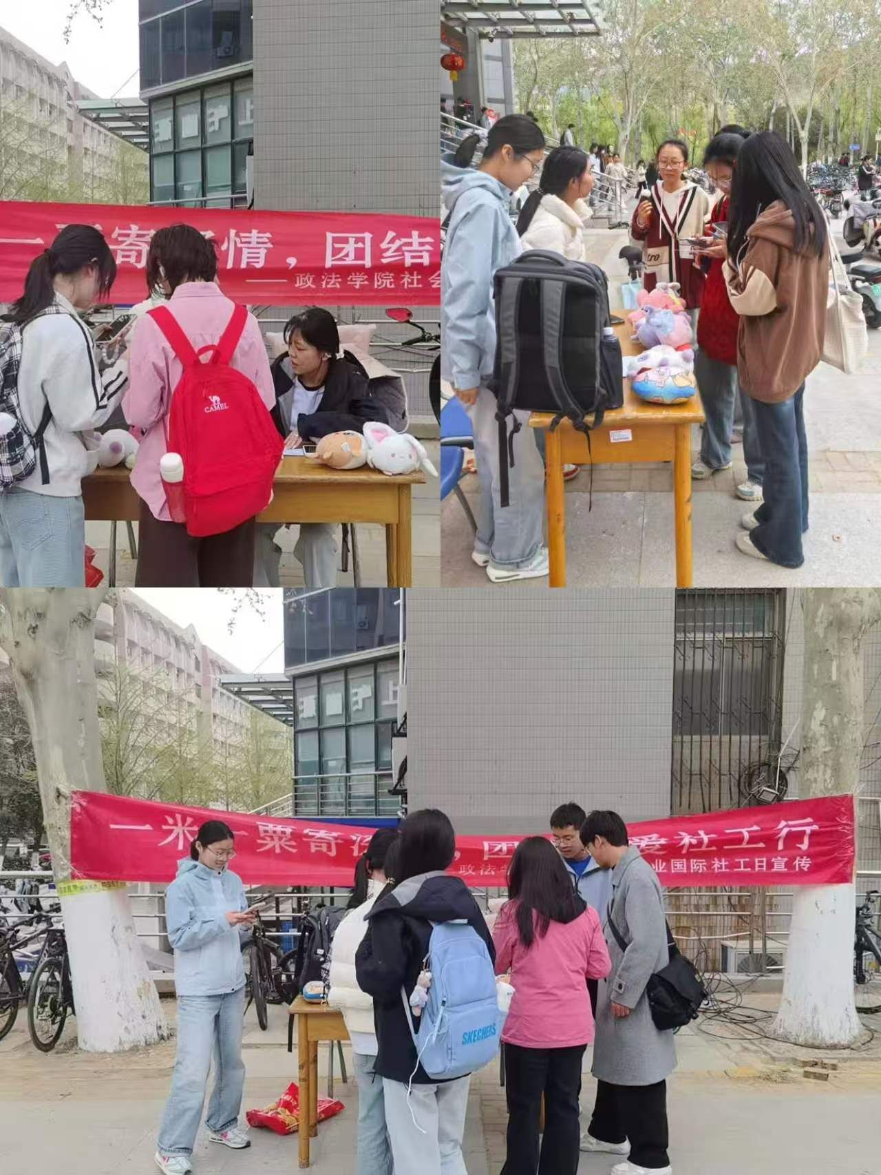 2026年3月31号,我院社会工作专业学生在第八食堂广场开展了国际社工日宣传活动,本次“一米一粟寄深情,团结友爱社工行”为本次国际社工日系列倡导之一。